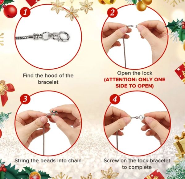 Odlična opcija za devojčice koje vole da prave svoj nakit. Ova narukvica je zanimljiva zanatska aktivnost tokom praznika, koja omogućava devojčicama da mešaju i kombinuju perle i privjeske kako bi personalizovale svoju jedinstvenu narukvicu za Božić.