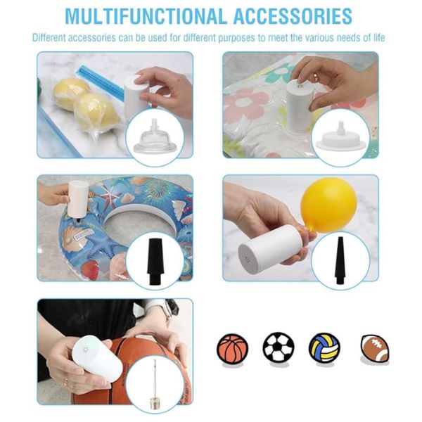 - Vakumski zatvara bilo koju hranu ili naduvava lopte i igračke za plažu