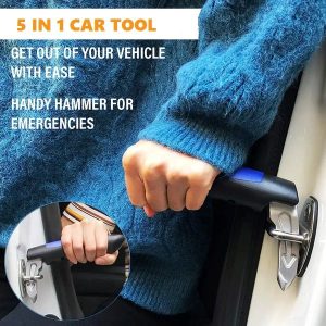 Ova svestrana ručka za pomoć u automobilu kombinuje rezač sigurnosnih pojaseva, razbijanje prozora, punjivu baterijsku lampu, zviždaljku za pomoć i kvaku na vratima – idealno za hitne slučajeve i svakodnevnu upotrebu.