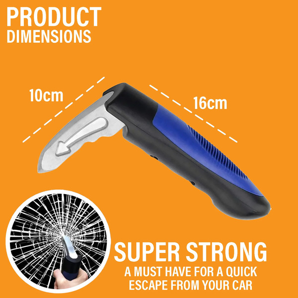 Funkcije: Sekač sigurnosnih pojaseva, LED baterijska lampa (punjiva), zviždaljka i pomoćna ručka
