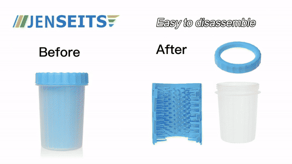 Dodajte vodu i sredstvo za čišćenje ljubimaca u šolju, umetnite blatom prekrivenu šapu, okrenite i osušite. Nakon što očistite sve šape, izlite prljavu vodu i očistite šolju i silikonsku četku. Dizajn za raslojavanje omogućava lako rastavljanje i čišćenje, osiguravajući da je šolja uvek spremna za sledeću upotrebu.