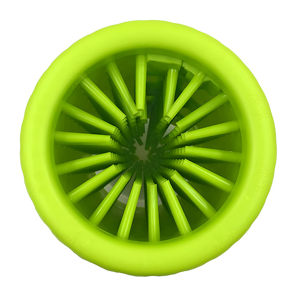 Cilindrični dizajn omogućava učinkovito pranje teško dostupnih područja. Jednostavno ubacite šapu psa, okrenite je i pustite da silikonske čekinje uklone prljavštinu i otpatke. Uživajte u čistom domu bez problema.