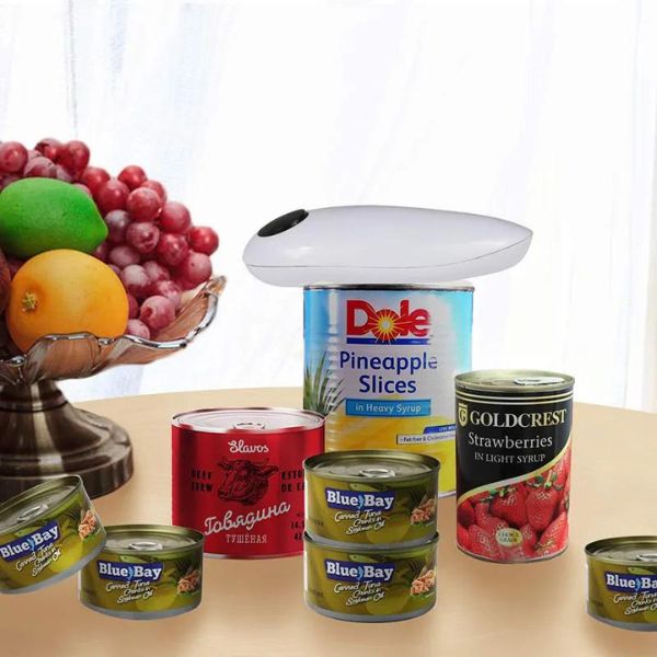 Dovoljno je pritisnuti dugme za brzo i sigurno otvaranje konzervi različitih veličina. Savršeno za svakoga, uključujući osobe sa artritisom ili bolovima u rukama.