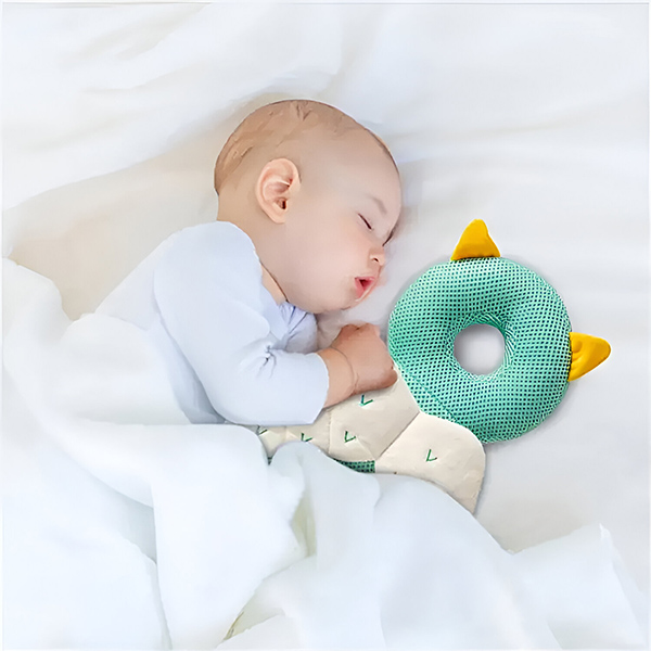 Овај мекан и нежан јастук за главу бебе може бити опуштајући пратилац за бебу током дремања и спавања. Прозрачан и плишан материјал је нежан за бебину кожу, осигуравајући да остане удобан и на месту. Ова позната и пријатна присутност помаже да се беба смири, олакшавајући јој да се опусти и заспи.
