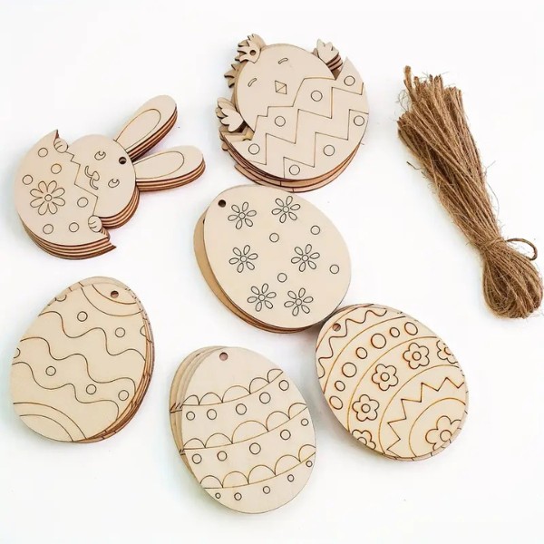 Glatka drvena površina čini ova jaja lakim za dekoraciju sa bilo kojim materijalima za rukotvorine koje imate pri ruci. Priloženi konopci od konoplje omogućavaju brzo i lako kačenje. Odlična su za sve uzraste da kreiraju svoje dizajne – zabavna aktivnost za porodično vreme ili grupne projekte.