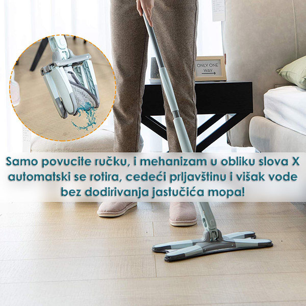 Zaboravite na natopljene mopove i prljave ruke! Naš napredni sistem za ceđenje oponaša ceđenje rukom, uklanjajući 2x više vode nego tradicionalni mopovi za brže i lakše čišćenje!