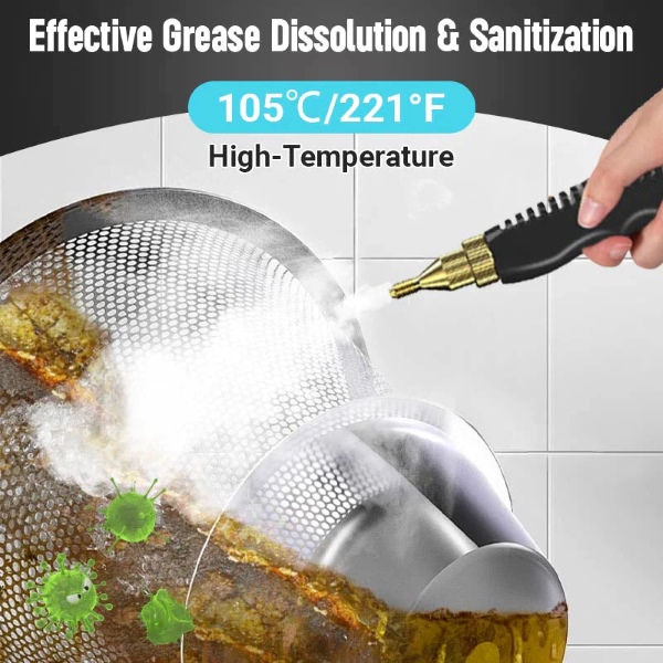 Nazivna snaga od 1600W stvara paru do 105℃ za manje od 10 sekundi, uklanjajući masnoću, prljavštinu, prašinu i mrlje sa različitih površina brzo i efikasno.