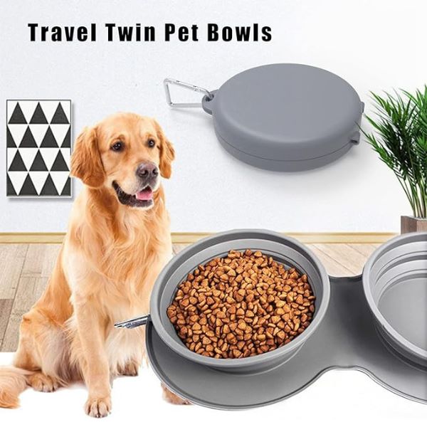 Recite zbogom neurednom hranjenju kućnih ljubimaca na putovanju ili kod kuće. Naša dupla sklopiva činija sadrži dve velike činije za hranu i vodu, idealne kako biste osigurali da vaš krzneni prijatelj ostane hidriran i dobro nahranjen čak i na putu. Učinite svaku avanturu udobnom i prijatnom.