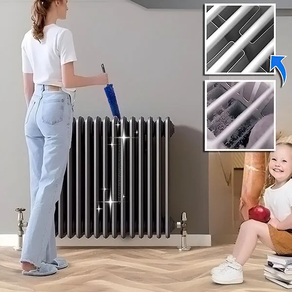 Nije potrebno uklanjati rešetke radijatora. DUSTOFF je napravljen po meri za čišćenje radijatora. Njegovo elektrostatičko punjenje privlači prašinu i prljavštinu, čineći ga idealnim za radijatore sa panelima, stupovima, rebrima, ljestvama i držačima za peškire.