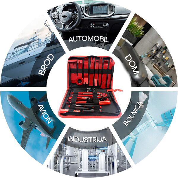 Uklanjanje obloga automobila bez pravog alata može biti zastrašujuće. Naš komplet uključuje 38 različitih alata dizajniranih posebno za jednostavno i sigurno uklanjanje unutarnjih i vanjskih obloga. Omogućuje vam da sami izvršite male popravke i podešavanja bez napora. Savršeno za rješavanje neočekivanih problema tijekom dugih putovanja.