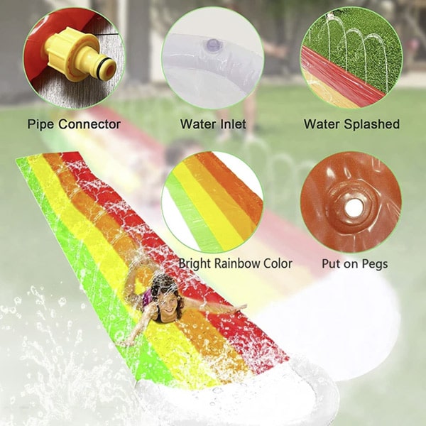 Uživajte na otvorenom sa naduvavajućim toboganom opremljenim sistemom za navodnjavanje! Glatka i klizava površina omogućava brzo klizanje, dok sistem navodnjavanja održava klizavost tobogana i dodaje uzbuđenje. Pogodno za decu i odrasle!