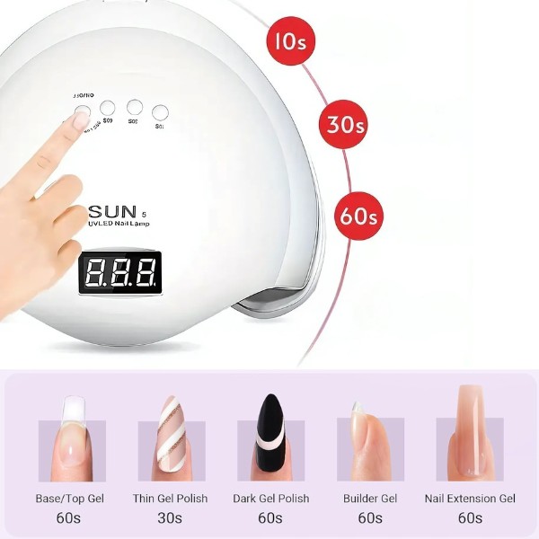 Sa 3 podešavanja tajmera (10s, 30s, 60s), možete prilagoditi proces sušenja prema vrsti gela i vašim ličnim potrebama. Pametni senzor automatski se uključuje kada su vaše ruke ili stopala postavljeni ispod lampe, osiguravajući jednostavno iskustvo svaki put.